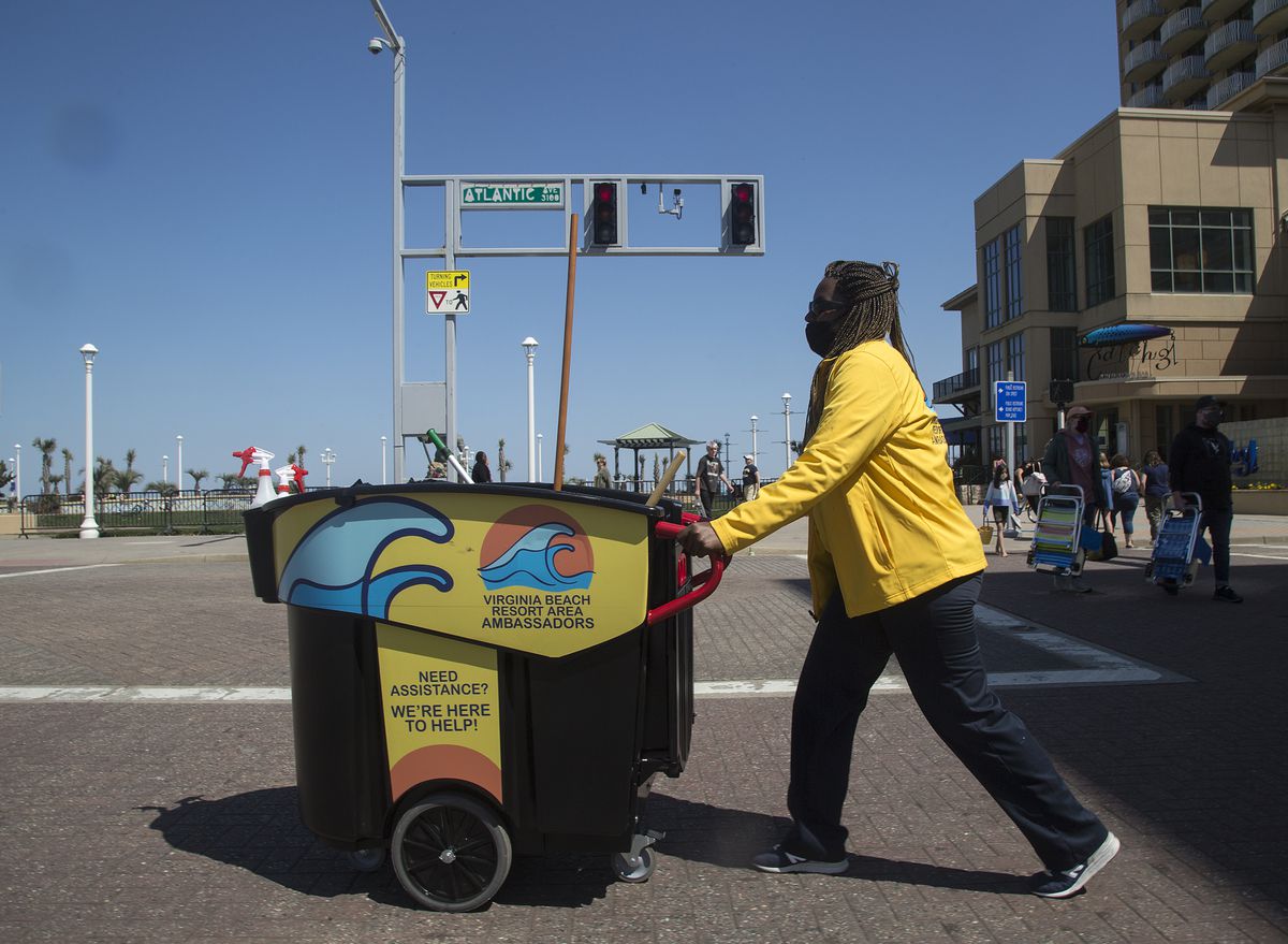 Ambassadors patrol a 40-block stretch of Atlantic Avenue, from Pacific Avenue to the bike path, focusing on delivering cleaning and hospitality services in the resort area of Virginia Beach.